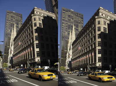 7) Use your digital camera to shoot your subject from the same camera position, zoom to match the same framing. The digital camera should be tilted up to show the convergance (keystone effect) of the subject with no lens rise.