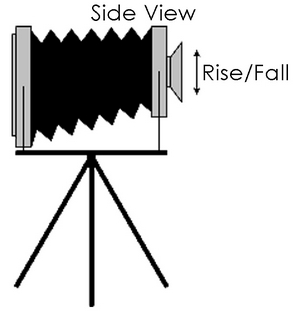 The rising and falling adjustments of the front and rear standards have a comparable effect: they move the position of the imago relative to the film without having to tilt the entire camera up or down. In effect, these movements place the film nearer to the edge of the circle of illumination or field. of the lens. Therefore. the extent of the vertical movement depends on the covering power of the lens. Definition and light intensity often falls off at or near the edge of the field, particularly with short focal length lenses.