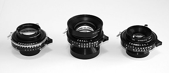 Copal Shutters - from left to right - Fujinon W 125mm f/5.6 on Copal No. 0, Nikkor M 300mm f/9.0 on Copal No. 1, and Nikkor M 450mm f/9.0 on Copal No. 3