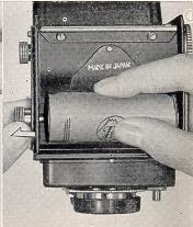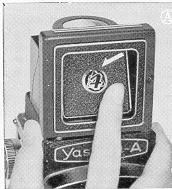 When fences or other obstructions are in your way you can hold your Yashica over head, focusing and viewing from below. |