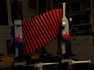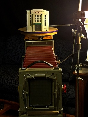 7) Use your digital camera to shoot your subject from the same camera position, zoom to match the same framing. The digital camera should be tilted up to show the convergance (keystone effect) of the subject with no lens rise.