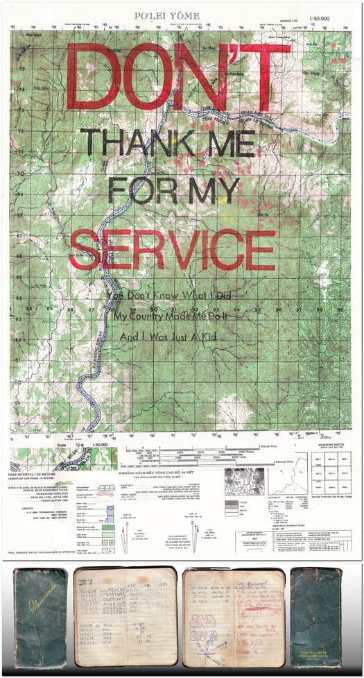 Vietnam topographic map of Chu Pa mountain battle. My forward observer logbook with defensive targets plotted on map.