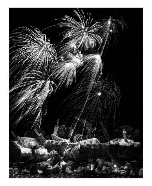 Proof through the night that our war is still here. In the darkness there is mystery and fear. The illumination artillery round I fire lights up the sky and reveals whether there is safety or danger. Enemy or tiger- which is more feared? Who is there, who do we fear, who or what have we killed. The flash of light reveals the truth and also exposes my film. In the dark it makes this print. In government it reveals the truth, or at least it is supposed to reveal the truth.