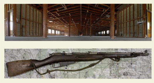 Mixed, topo map, letterpress text, Forward Observer logbook