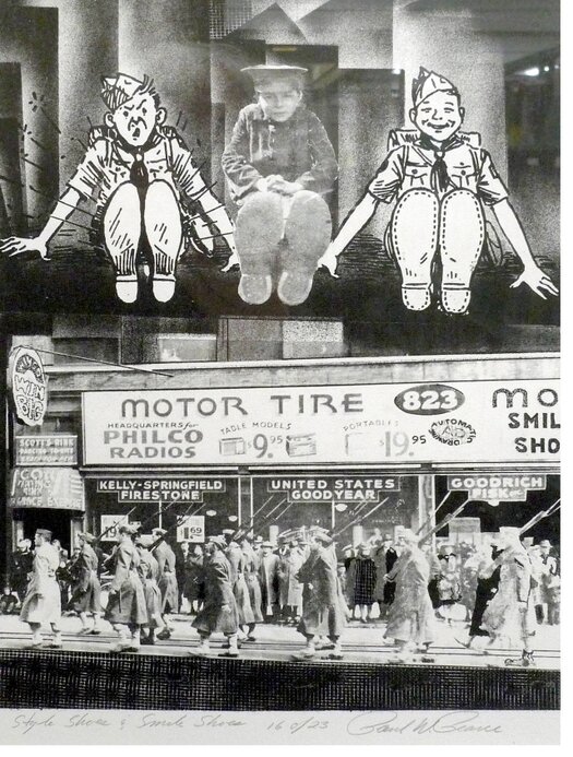 Made from 16 mm movie film strips printed as a mosaic in a 4X5 enlarger on mural paper.